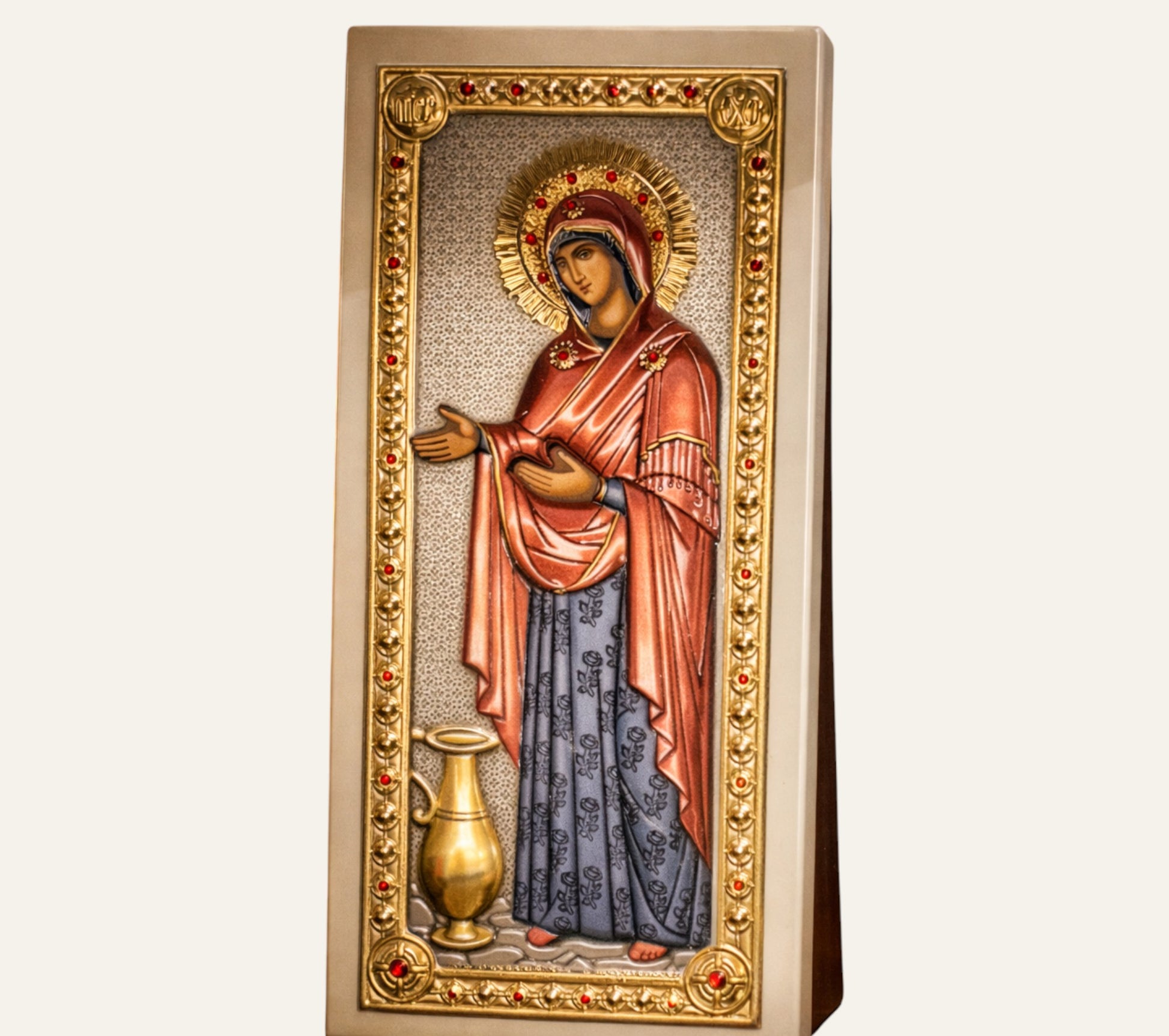 Icoana argintată Maica Domnului – Gerontissa („Sporul casei”) este chip de rugăciune și ocrotire, chemată pentru rânduială, pace și binecuvântare în familie. Maica Domnului, ca grabnic ajutătoare, mijlocește sporul cel bun al casei – nu doar material, ci și sufletesc: liniște, sănătate și înțelepciune. O icoană potrivită pentru binecuvântarea locuinței și întărirea credinței.